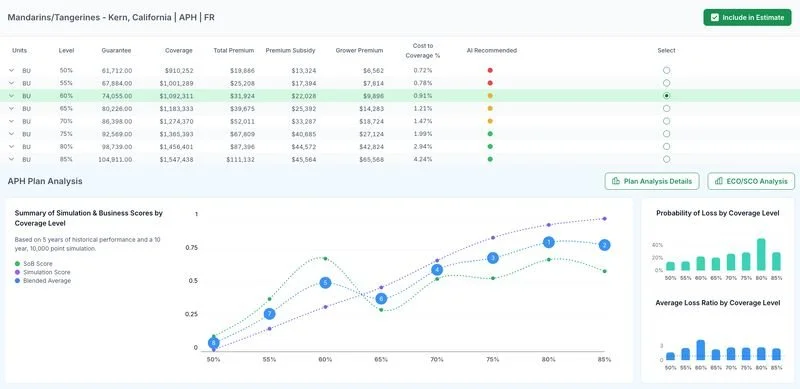 CropCore strengthens Insure.ag’s existing technology stack by adding sophisticated AI modeling that determines optimal coverage levels using a combination of historical crop and county data and future scenario modelling. These insights enable farmers to evaluate premium spend versus potential returns with unprecedented clarity.